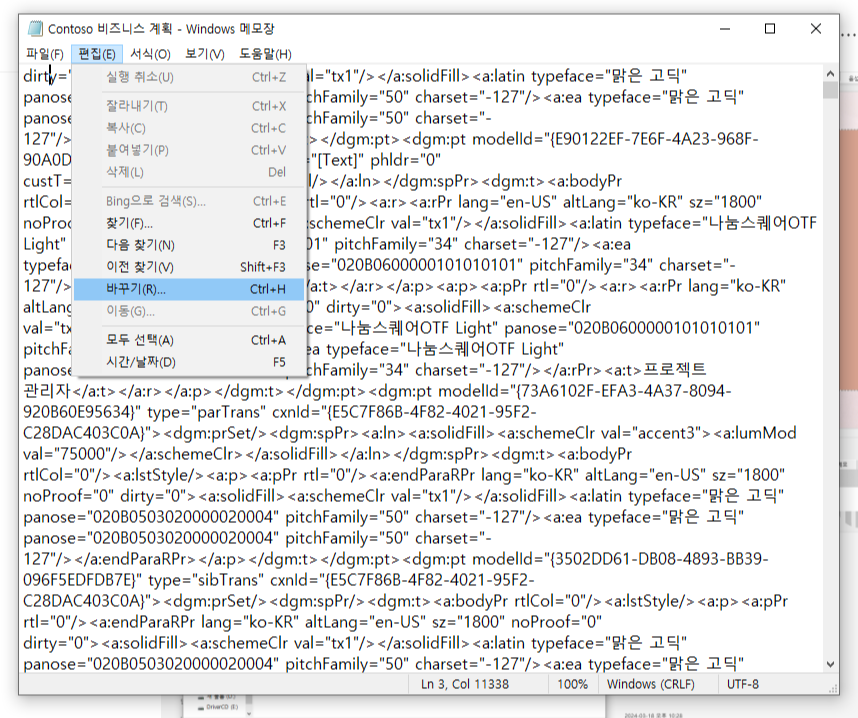 3. 편집 → 바꾸기