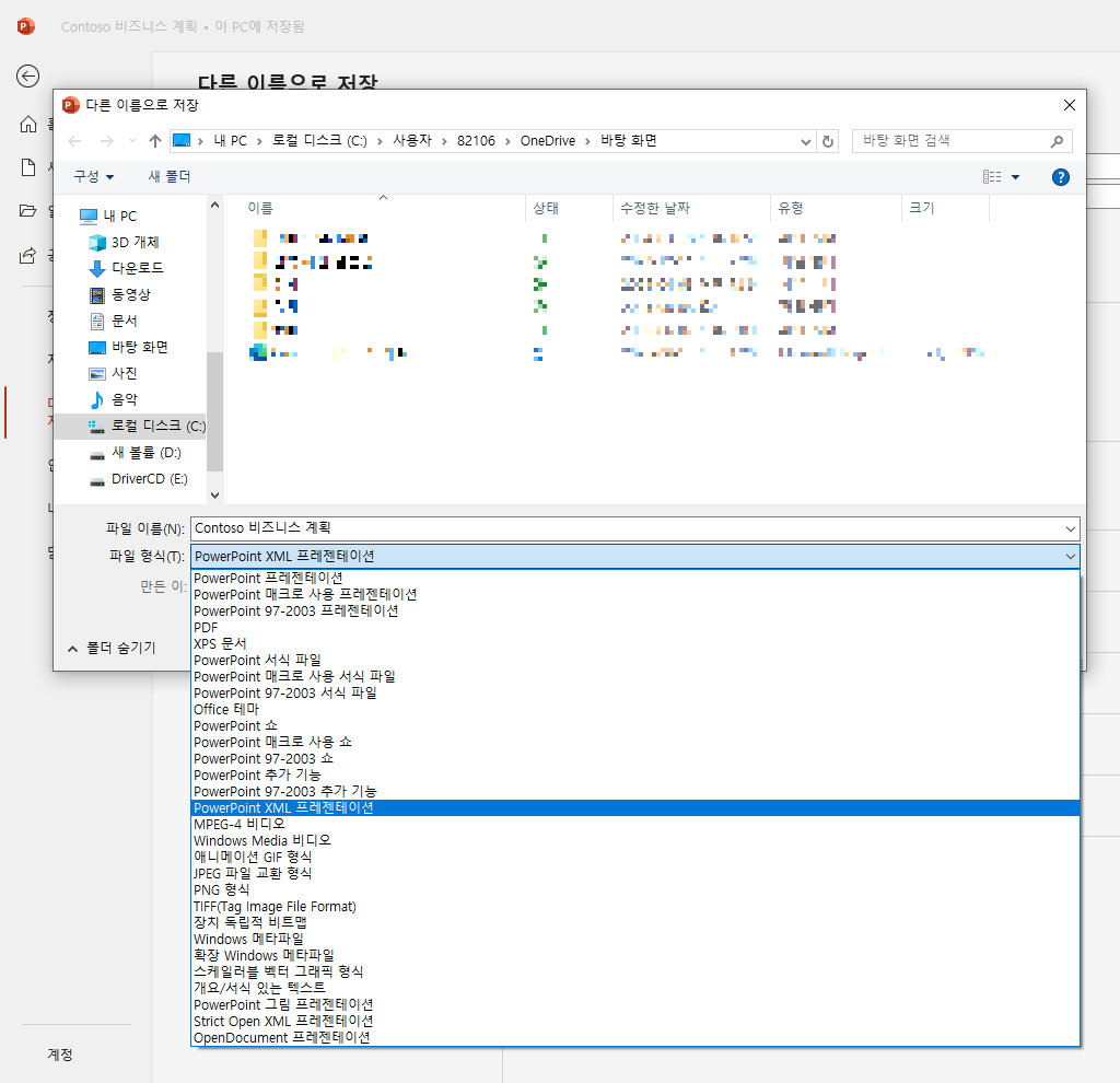 1. 파일 → 다른 이름으로 저장 → 파일 형식: PowerPoint XML 프레젠테이션