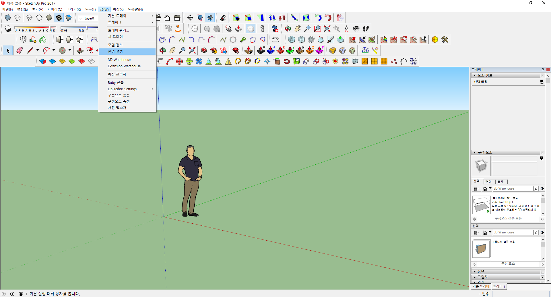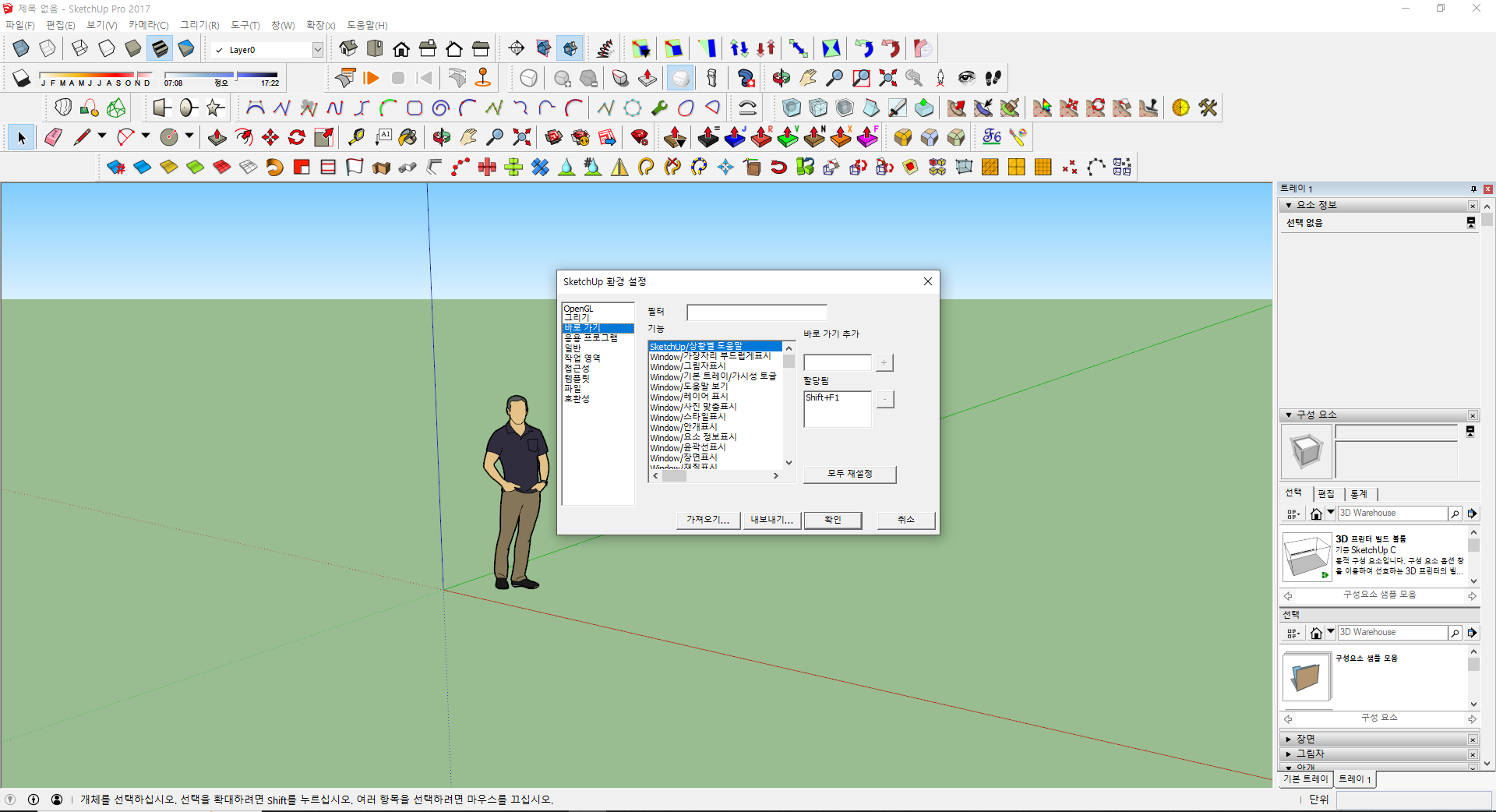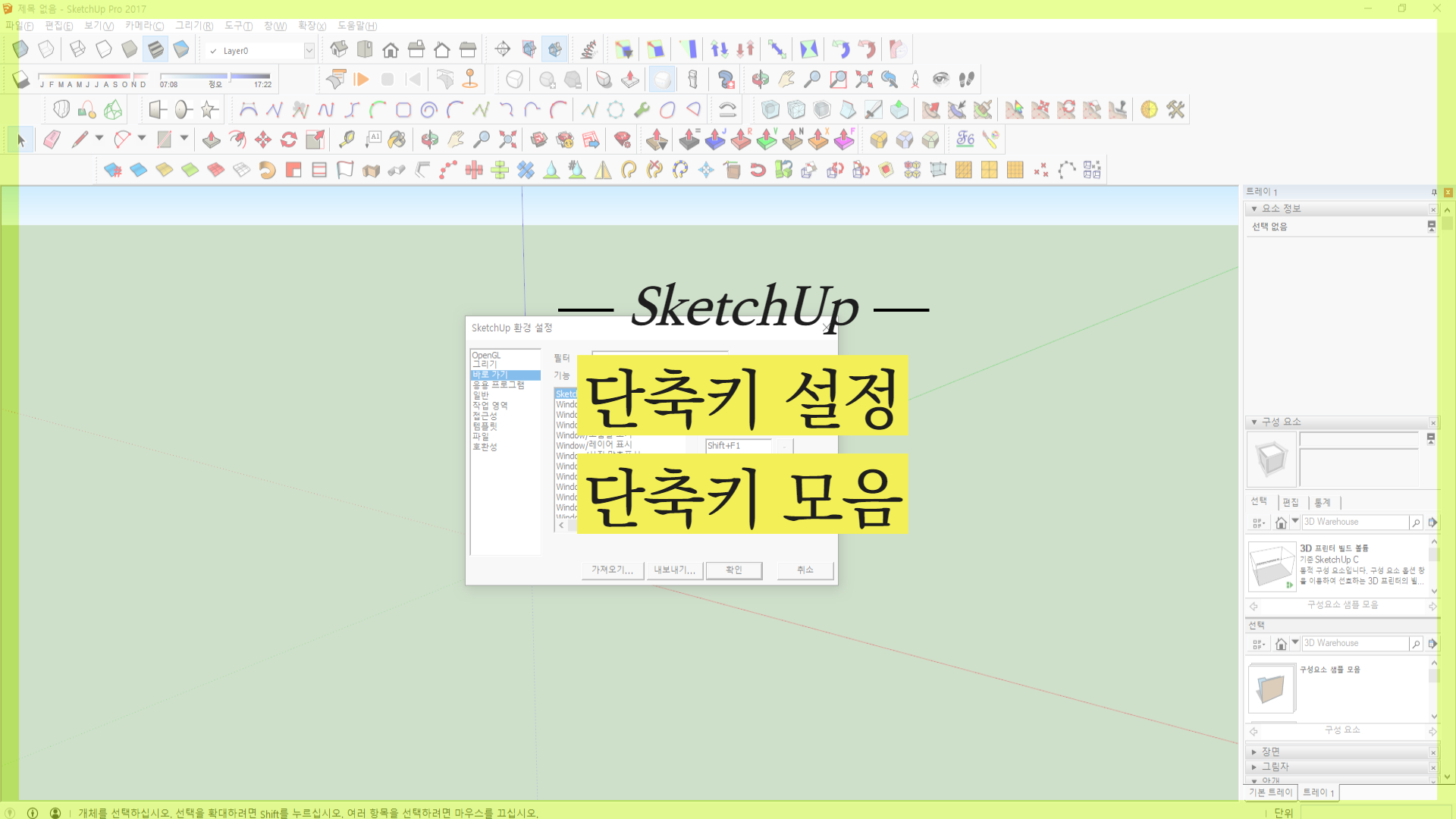 1. SketchUp(스케치업) 단축키 설정 방법: 창(W) > 환경설정